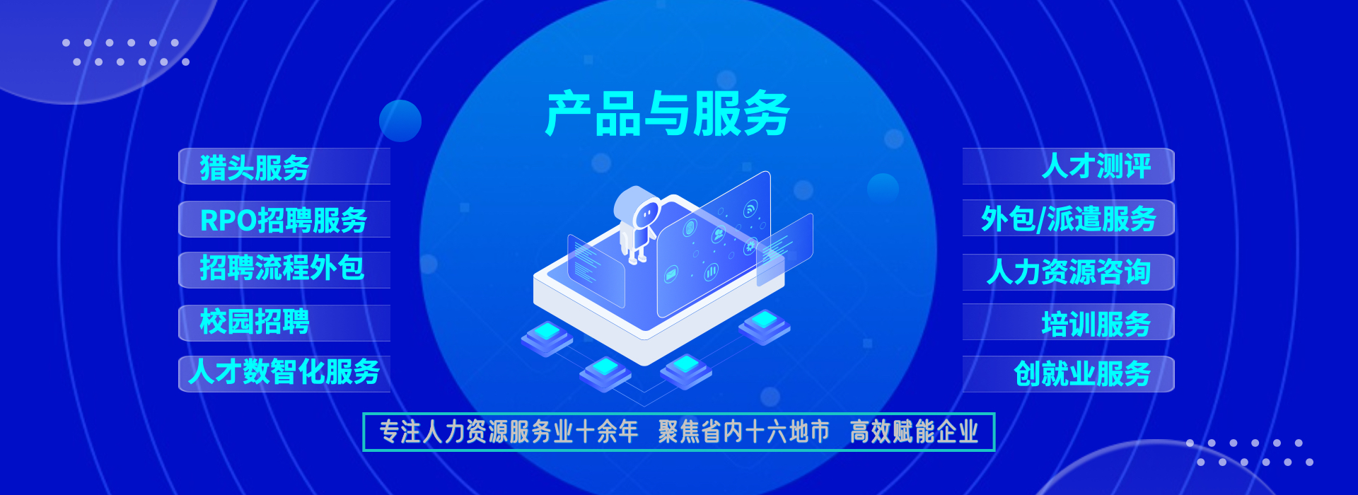 一站式服務,降低企業(yè)管理成本 事務外包:人事事務外包,實習生招聘與管理外包 崗位外包:IT技術、財務/會計、行政文秘類和市場類崗位 項目外包:校園招聘外包、招聘流程外包、社交媒體運維外包、設計創(chuàng)意外包 業(yè)務流程外包:物業(yè)管理項目外包、零售快消行業(yè)的營銷服 務外包、倉儲物流業(yè)的倉儲與配送外包、O2O地推營銷外包、 呼叫中心外包等